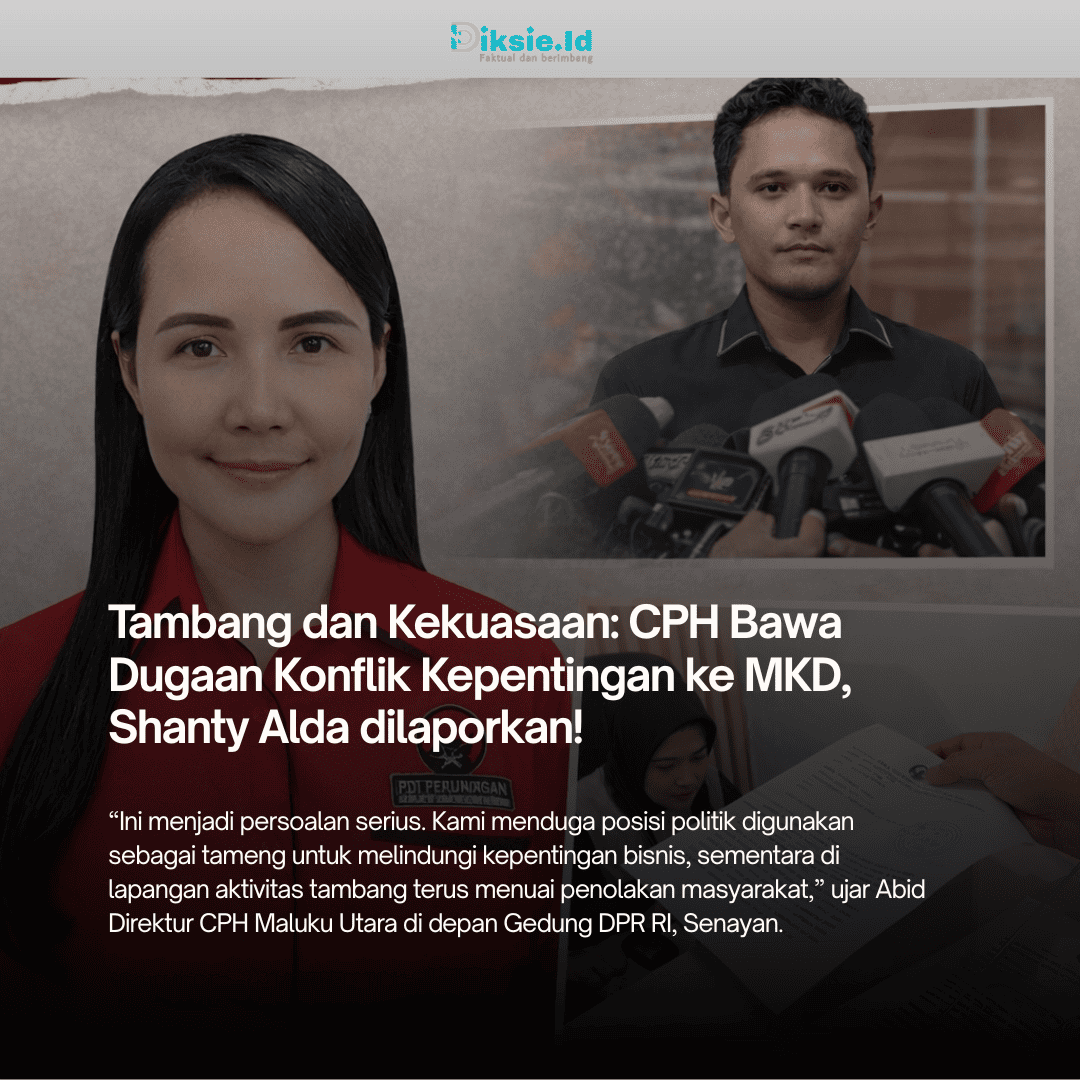 Jakarta, 9 April 2026 — Central Pemuda Halmahera (CPH) resmi melaporkan Anggota DPR RI dari Fraksi PDI Perjuangan, Shanty Alda Nhatalia, ke Mahkamah Kehormatan Dewan (MKD) atas dugaan pelanggaran kode etik. Laporan tersebut berkaitan dengan indikasi konflik kepentingan antara posisinya di Komisi XII DPR RI yang membidangi energi dan lingkungan hidup, dengan keterlibatannya dalam sejumlah perusahaan tambang nikel di Maluku Utara.